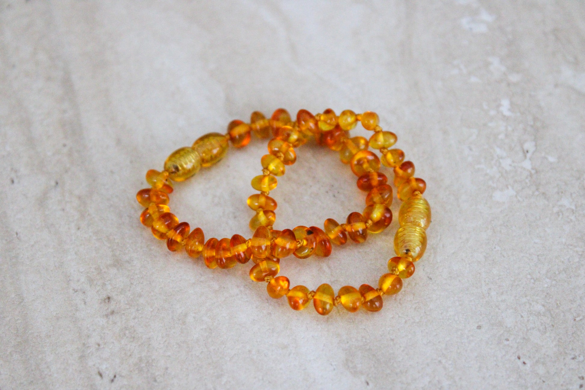 Deze Baby Barnsteen Armband is gemaakt van 100% echte Baltische barnsteen, geen steen, maar versteende hars van prehistorische naaldbomen. Miljoenen jaren geleden droop deze hars uit bomen, waarna het door de tijd heen is gefossiliseerd tot de warme, honingkleurige barnsteen die we vandaag kennen.