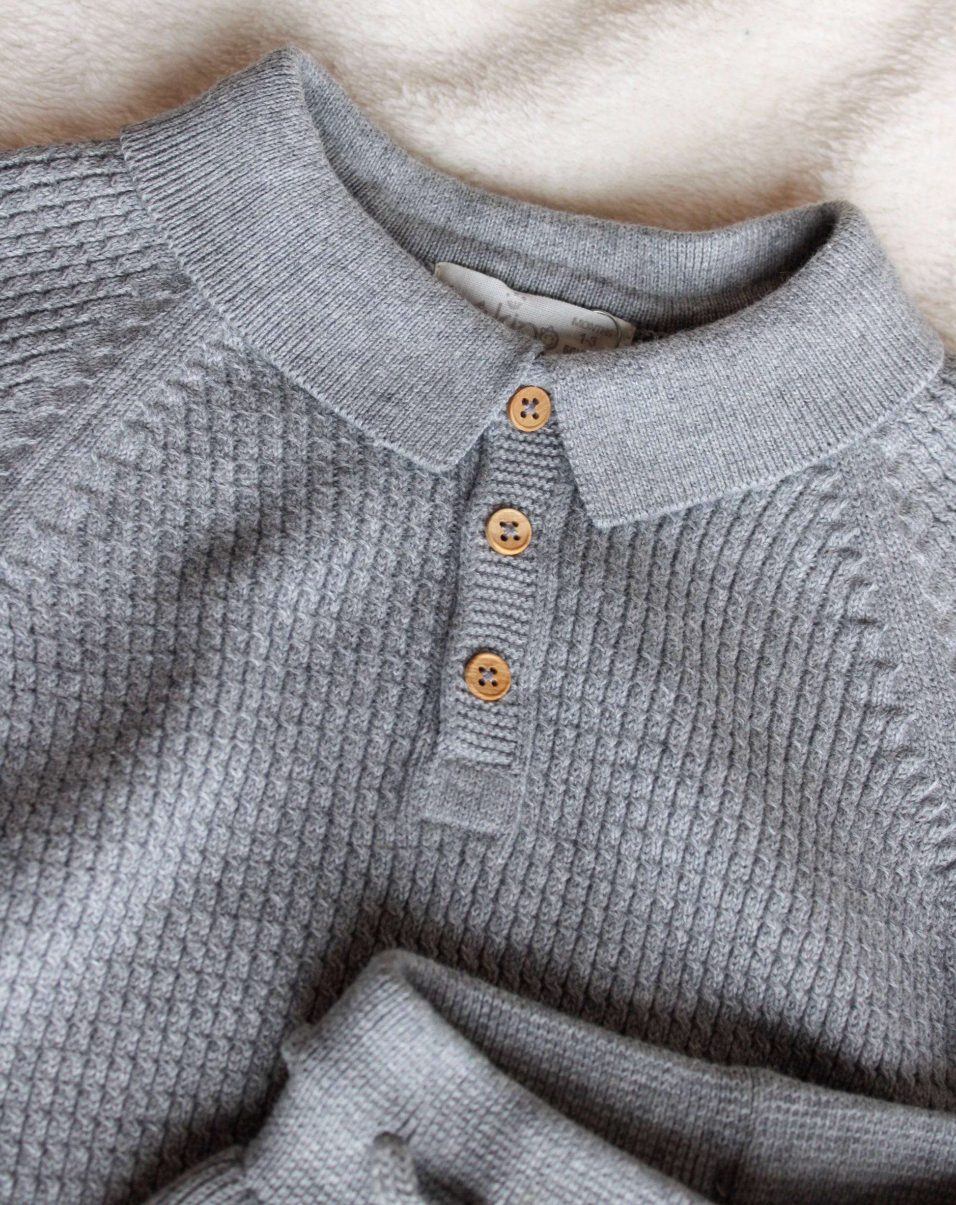 De dik gebreide structuur geeft de outfit een luxe en warme uitstraling, terwijl het 100% biologisch katoen zorgt voor zachtheid en comfort op de gevoelige babyhuid.